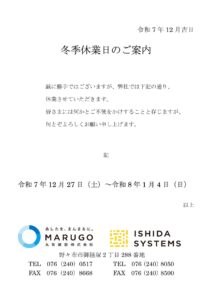 冬季休暇のご案内